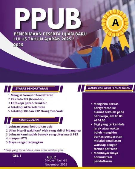 Program pendidikan kesetaraan setara SMA dengan ijazah resmi diakui negara.